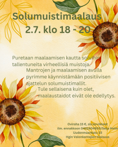 Puretaan maalaamisen kautta soluihin tallentuneita negatiivisia tai vääriä muistoja. Tule sellaisena kuin olet, et tarvitse maalaustaitoja. Oviraha 15 sis. tarvikkeet.
