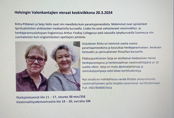 Seija Helin 040 526 9956, kristallitupa@gmail.com